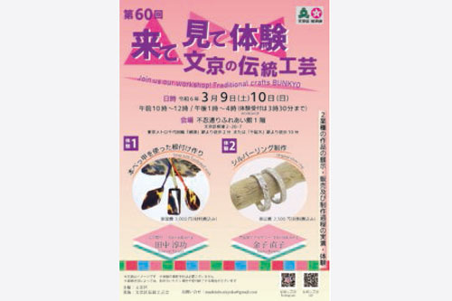 どなたでも参加できます。毎月違う工芸の体験ができます。職人さんが丁寧に指導いたします。文京区伝統工芸の技術や工芸品を広く認知を仰ぐため、また文京の観光スポットとしても知っていただくため、文京区との協働により「来て見て体験」2017年4月よりスタートしました。